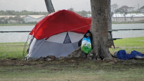 Life just got a little tougher for the growing Pearl City homeless community as Mayor Hannemann signed new laws yesterday that bans enclosed tents and shopping carts in city parks. Tents with walls will be allowed in 14 city parks that issue camping permits. Canopies used for shade with open sides will also be allowed in city parks.