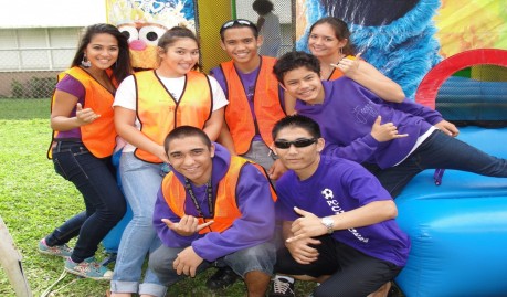 Student volunteers having a great time working the inflatable rides. Photo By: Barry Villamil / barry@mypearlcity.com