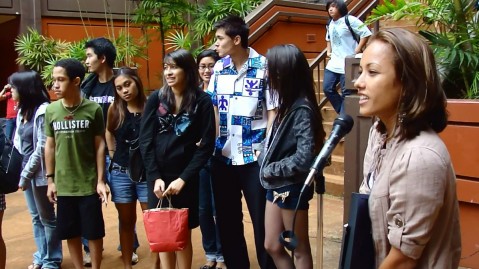 Hurley Sales Representative, Leilani Patacchia announcing Pearl City as the winners ot the Walk to Walk Regional Competition on Friday at PCHS. Photo By: Barry Villamil / barry@mypearlcity.com