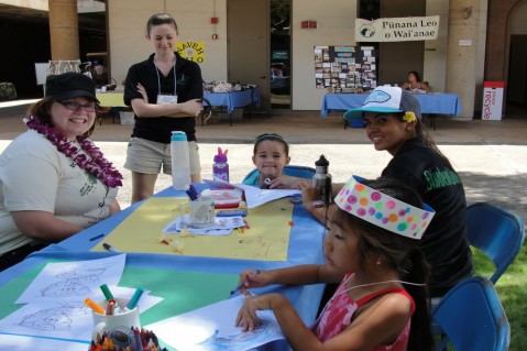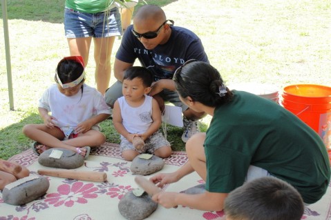 Keiki learning the Hawaiian culture "hands on" from festival volunteers.