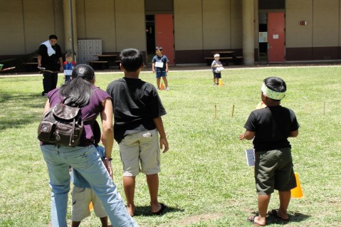 Keiki enjoying learning how to play Hawaiian games on Saturday at the Festival.