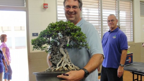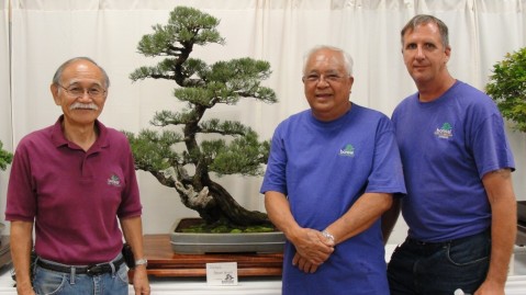 Pearl City Bonsai Club members, Ron Kaneshiro (left) Bob Reyla (center) and PCBC President, Keith Schultz.