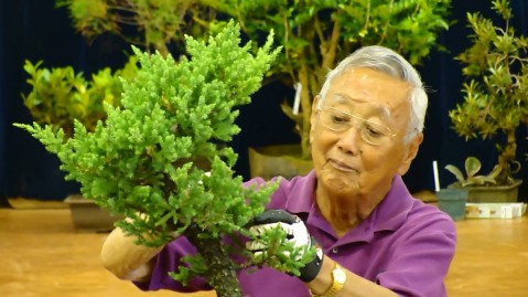 Sensei, Ed Nakanishi demonstrated bonsai tree shaping and maintenance on Saturday at Pearl Ridge Elementary School.