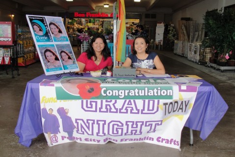 PCHS Project Graduation committee members, Diana Woo (left) and Melissa Bojorquez(right) in front of the Ben Franklin Crafts Store at the Pearl City Shopping Center on Saturday.