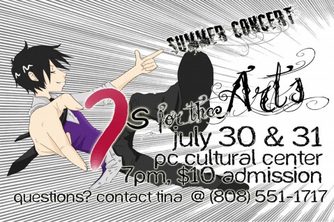"The first benefit concert "Heart for the Arts" was originally put together by my best friend and I, Wainani Paikai," said co-chair, Christina Uyeno. "Being student directors for our senior year production of Beauty and the Beast, our director, Mr. Steven Kam, brought up the issue of funding the production due to furloughs and the recession in general, so me and Wainani created "Heart for the Arts" in efforts to keep the program alive, this summer concert will be funding next year's production of "Jekyll and Hyde the musical".