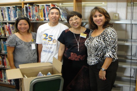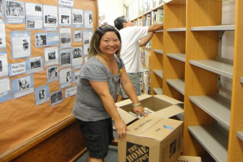 "Now we have the Pearlridge Rotary Club helping us unpack and put the books back on the shelves," said Principal Toyama. " During the summer in July, they came and helped us pack up. It's just great to have them here helping our community."