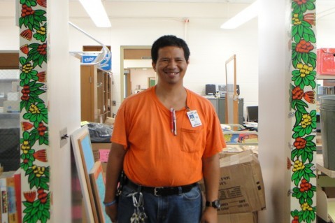 " I started in December of 2004, I took about two weeks and I did it from bare wall to what it is today," said school custodian and artist, Mr. Michael Lani. "My next project is to put leis on top of the pillars for Mrs. Chan so that the kids can enjoy the artwork."