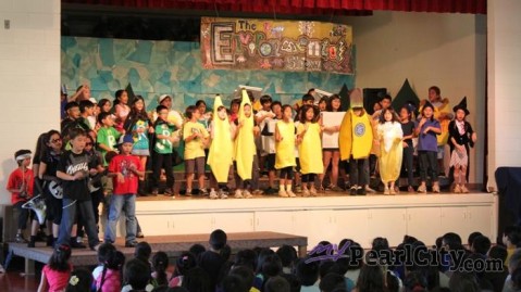 Momilani Elementary School 4th graders took their message of going green on Wednesday as they performed to "The Environmental Show" before a packed house at the school cafeteria.