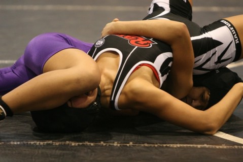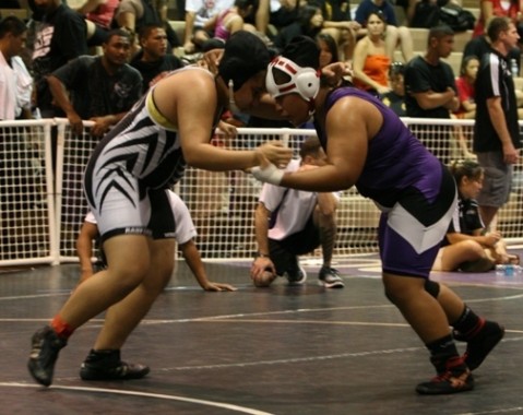 Pearl City's Joey Nanhta overpowers Amber Larmarca from Radford High School for the 103 Lbs. Varsity Girls Title.