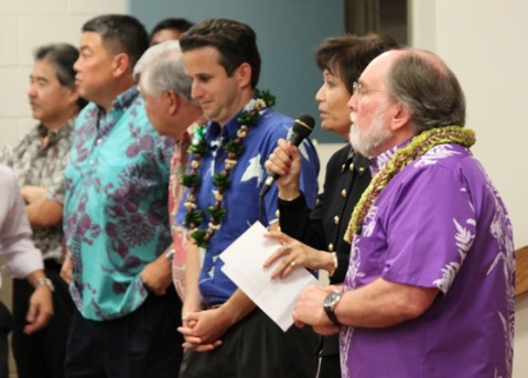 Lt. Governor Brian Schatz (3rd from right) joined Governor Abercrombie and area elected Legislators during Thursday's town hall meeting.