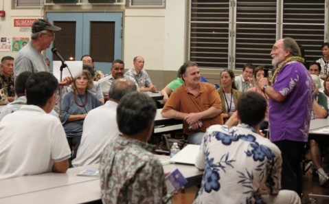 Governor Neil Abercrombie opened up the floor last night at the Aiea/Pearl City town hall meeting to listen to the public's concerns with regard to his administration's proposed plan to fix the state's budget deficit.