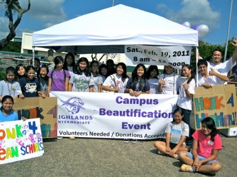 The Highlands Intermediate School (HIS) Campus Beautification event was held on Saturday, February 19, 2011, from 8 a.m. – noon, at Highlands Intermediate School in Pearl City. The weather this time around was perfect. More than 220+ volunteers, from age 5 to 80, showed up to help from the Pearl City community and beyond.