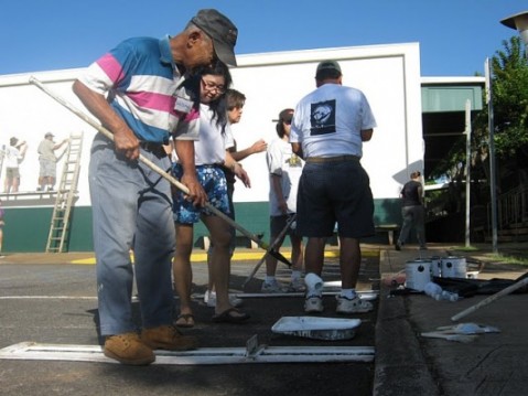 First Baptist Church Pearl City repainting lines in one three parking lots.