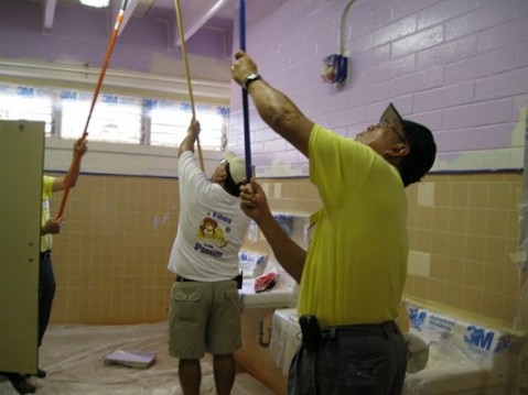 Pearl City Lions Club painting one of the girls’ restrooms.