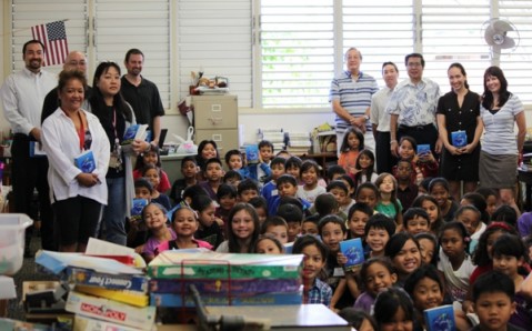 Ninety (90) dictionaries were distributed to the students and teachers from four third grade classrooms at Waiau Elementary on Friday that also included a class that represented the third grade Hawaiian Immersion program.