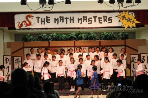 Momilani Elementary school transformed the school's cafeteria into Sugaku Dojo on Wednesday for the third grade performance of the "MATH MASTERS".
