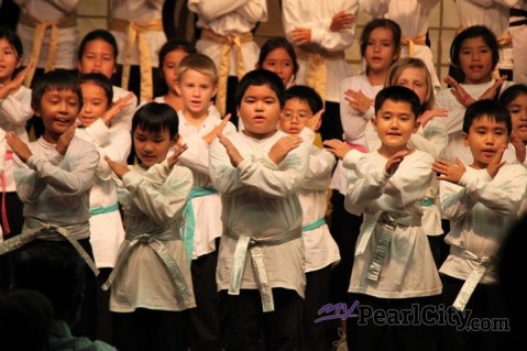 Sugaku Dojo, Aqua colored belt Math Masters performed by Momilani Elementary School third graders pictured on stage on Wednesday.