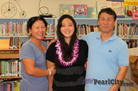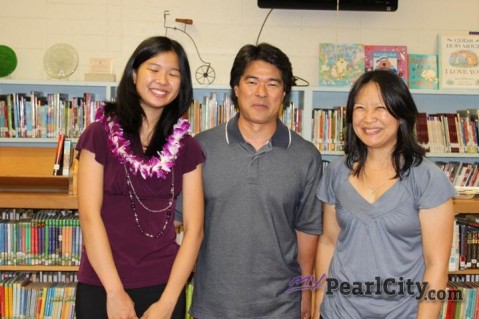 Pearl City High School Principal, Carlyn Fujimoto and Post High School Counselor, Mark Oda joined the scholarship recipients and their parents for the scholarship presentation.