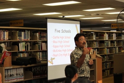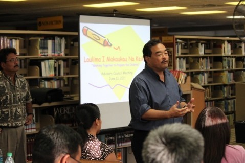 McKinley High School Principal, Ron Okamura pictured introducing himself and school during the first Laulima I Makaukau Na Keiki – Smaller Learning Communities (SLC) Consortium Advisory Council Meeting on Monday, June 13, 2011 at McKinley High School.