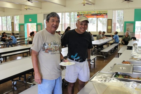 PCCA Board member, Warren Hiromoto (right) and Fujimura (left) pictured at the Manana Elementary School cafeteria on Tuesday, July 26, 2011. Hiromoto and Fujimura provided chicken, noodles and dessert for the teachers and staff during the welcome back to school luncheon.