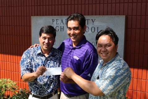 On Monday, August 8, Pearl City High School Vice Principal, Hahn Nguyen and Athletics Director, Reid Shigemasa were presented with a $1000 check donation from to help support the PCHS Athletic Department.