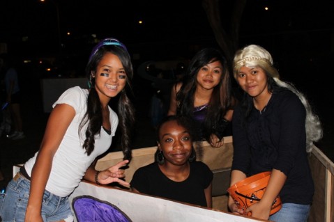 Student volunteers from Pearl City High School pictured working one the Halloween Bash Trick-or-Treat candy booths on Monday.
