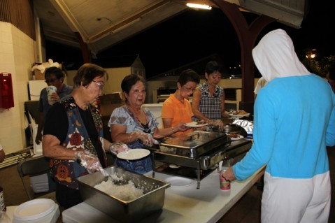 Community volunteers pictured serving up plates lunches on Monday at the PCF Halloween Bash.