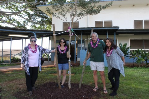 It was the perfect choice with both the variety of tree and location that features the school's beautiful Monkey Pod tree as a back drop to the newly planted Dwarf White Tacoma tree.