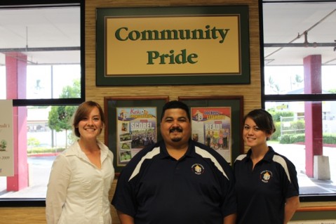 Chaney Durham, Office Manager of the Pearl City, Hawaii Self Storage (left) pictured with employess Kimo (center) and Lehuanani.