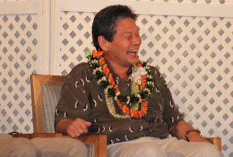 Duane Kurisu pictured having a great time during the Q&A portion of the evening on Wednesday at the Ala Moana Hotel's Hibiscus Ballroom.
