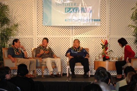 Duane Kurisu, aio Founder, Barry Taniguchi, President, KTA Super Stores and Allan Ikawa, Founder, Big Island Candies sat down with Susan Yamada, Executive Director for PACE, Pacific Asian Center for Entrepreneurship in front of an audience of around 600.