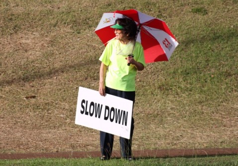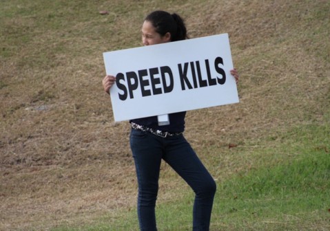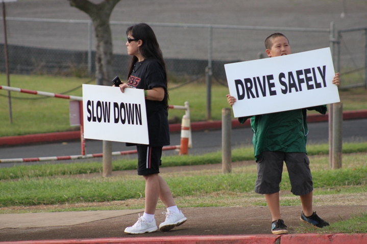CTAP volunteers held signs reminding motorist to slow down and drive safely on Kaahele Street.