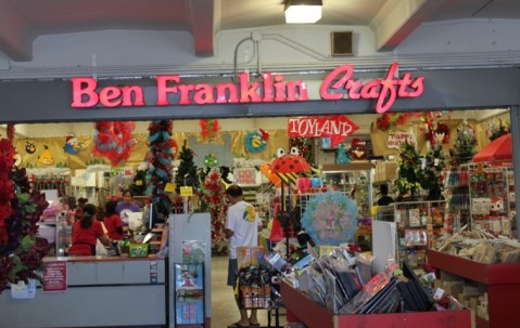 Entrance to the Ben Franklin Crafts store located at the Pearl City Shopping Center.