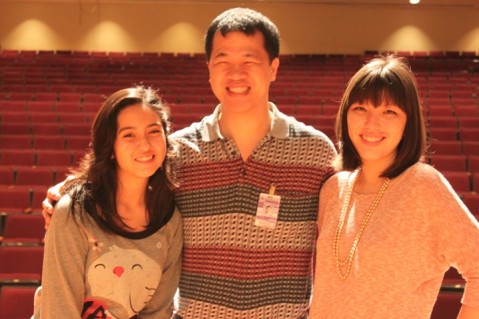 This year’s Spring Concert student co-chairs and co-directors for “Heart for the Arts", Kirstyn Trombetta (left) and Kaitlyn Iwashita (right) pictured with PCHS Drama teacher/director/choreographer, Mr. Steven H.Y. Kam.
