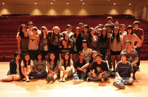 PCHS drama students performing in Saturday's "Hearts for the Arts" benefit concert pictured on stage at the Pearl City Cultural Center during rehearsal on Friday, January 12, 2012.