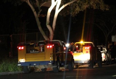HECO repair crews pictured on Noelani Street near the intersection of Noelani and Hoomalu Street in Pearl City at 10:45pm on Monday, January 16, 2012.