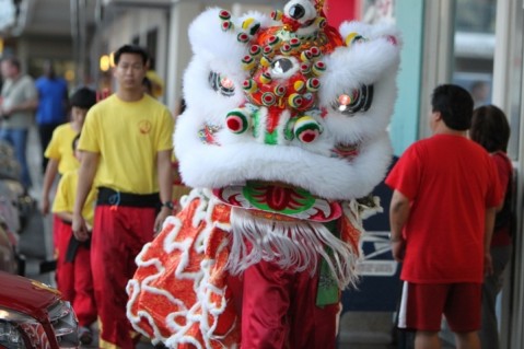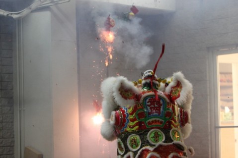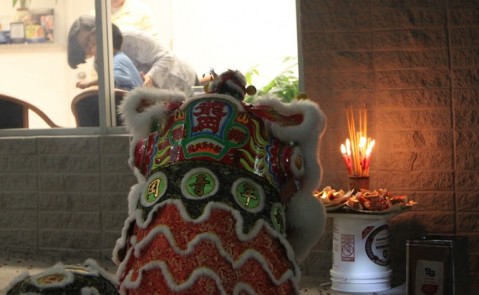 Chinese Lion Dance blessing performed at the Pearl City Shopping Center