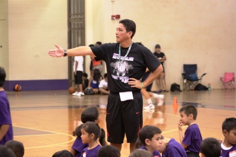 Coach Mike Taylor pictured leading Saturday's Hui O Momilani Basketball Clinic at the Pearl City High School gymnasium.