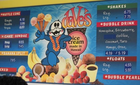 Dave's Ice Cream is open Sunday through Thursday from 10:30am – 9:00pm.