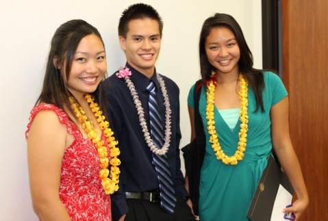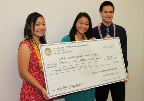 2012 PCCA Scholarship Award Recipients from Pearl City High School (from left to right), Kara Lynne Ogawa, Rachel Look, Adam Murata (Sabrina Angle not pictured).