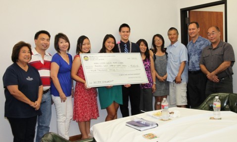 Kara Lynne Ogawa, Rachel Look, and Adam Murata along with their parents attended Monday night's scholarship awards dinner and check presentation. Sabrina Angle was not available to attend.