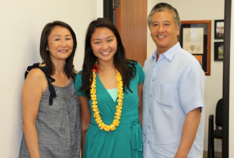 Rachel Look pictured her parents Chiaki and Damian Look. (Chiaki and Damian are also teachers at Pearl City High School). Rachel is headed to the University of Hawaii at Manoa and has recently been awarded the prestigious University of Hawaii Regents Scholarship.
