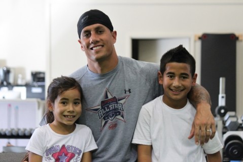 Owens poses for a photo with daughter Areana and son Chad Jr. at the HOP Waipio Training Facility.