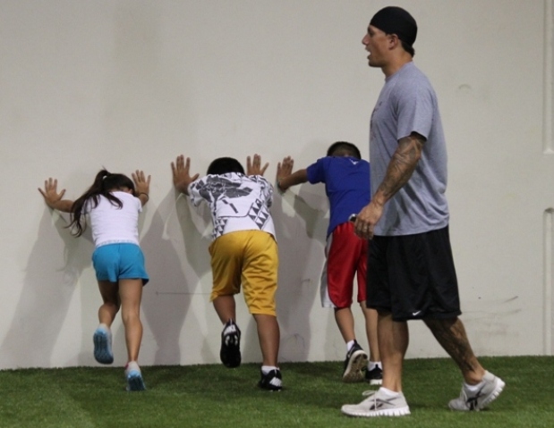 Owens runs his students through drills at the HOP Waipio Training Facility. Daughter Areana (far left).