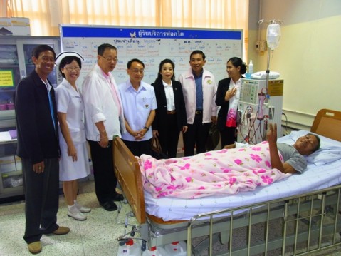 On June 18 the Rotary Club of Silom dedicated a hemodialysis machine at Amnat Charoen Hospital. The Rotary Club of Silom thanked both the Pearl Harbor and Rotary Club of Pearlridge for their generous contributions to the lifesaving humanitarian project in Thailand. (A renal patient raises his hand to say he is feeling well from the dialysis treatment.)