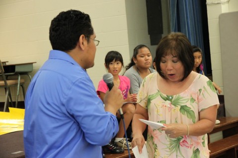 Representing the Pearl City Shopping Center Merchants Association was George Cochard from Rolf Advertising who handed Principal Suzanne Yamada, 10 – $100 gift certificates during the school’s welcome-back-to-school assembly held in the school cafeteria.