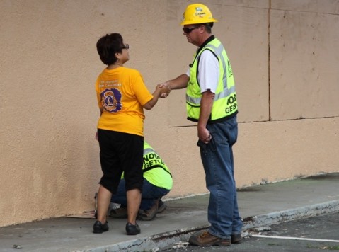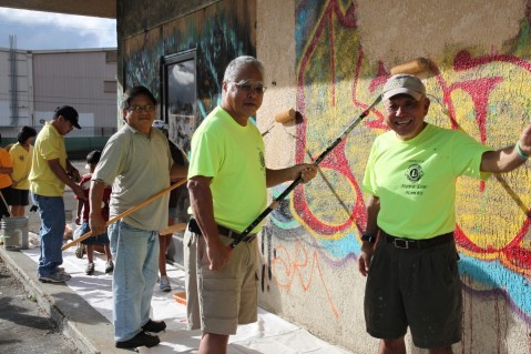 The Pearl City Lions Club coordinated a joint effort on Saturday, August 18, 2012, along with other zone region clubs to paint over graffiti that has covered property next to Homeworld on Kamehameha Highway in Aiea.
