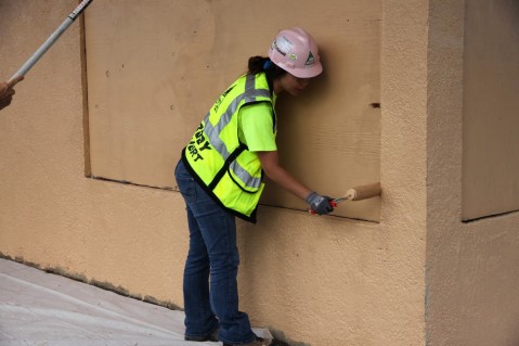 Elizabeth Tang pictured rolling on the finishing touches (almost done!).