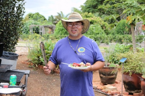 Bob Speer, past President of the Honolulu Rose Society who serves as the Peace Garden project coordinator and lead construction foreman, made an exciting announcement to the group of volunteers with regard to future support for the Peace Garden during lunch that was provided by the UGC Master Gardeners.