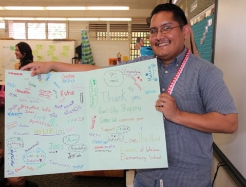 Waiau third graders expressed their appreciation to MyPearlCity.com and the Pearl City Shopping Center with two beautiful lei and wonderful a thank you card that was signed by the entire class and teachers.